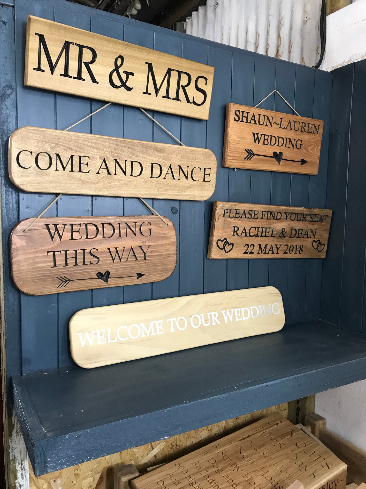 We can make you engraved wooden signs to put up at the venue.